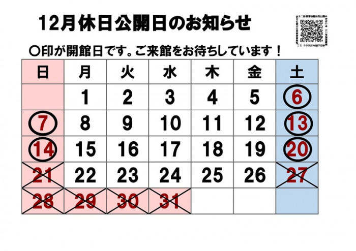 - 2025/12/01 お知らせ 12月の休日公開のお知らせ