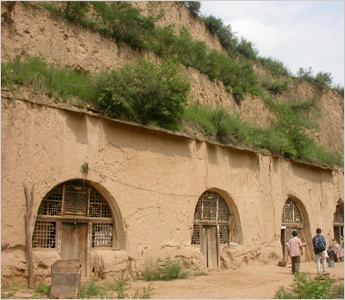 黄土高原の伝統的住居、ヤオトン: 黄土を掘って作られた住居で奥行きは8m, 天井までの高さは3.3m 。内部は夏涼しく、冬は暖かい。