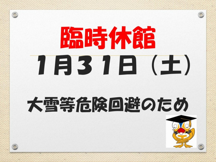 1月31日ミニ砂漠博物館臨時休館のお知らせ