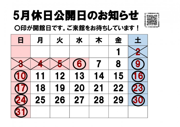 5月の休日公開のお知らせ